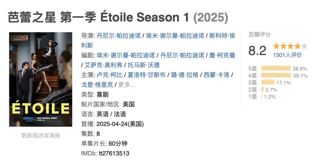 近日,亚马逊Prime Video又砍了一部好剧——《芭蕾之星》(Étoile)。
