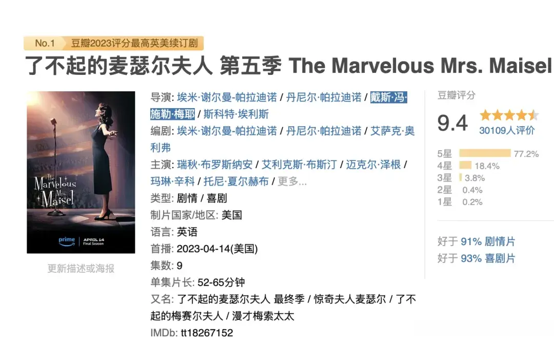 爆款美剧《了不起的麦瑟尔夫人》(The Marvelous Mrs. Maisel)就是他们的作品,这部剧不仅拿了艾美奖喜剧类最佳剧集,同时也是金球奖最佳喜剧类剧集获得者。